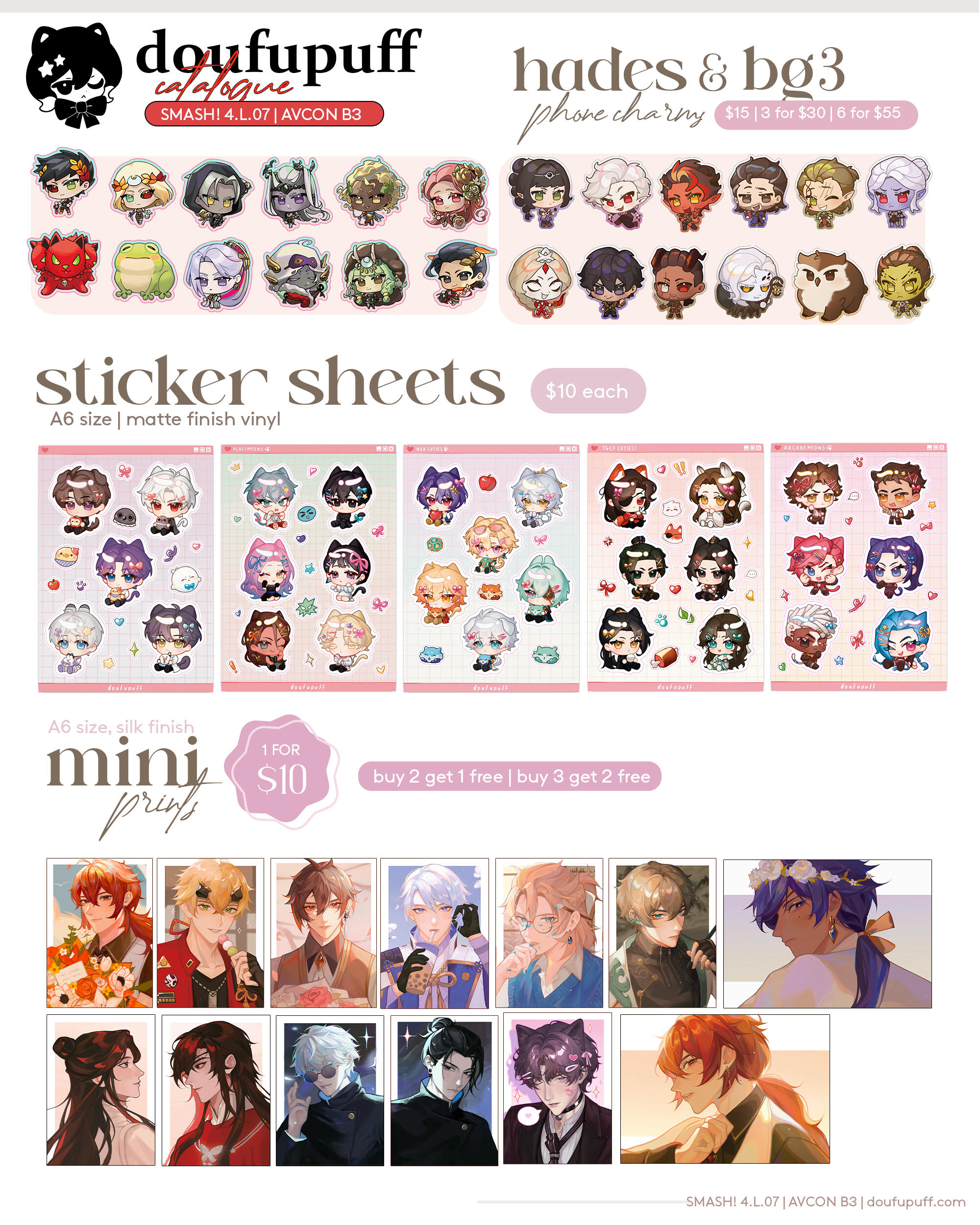 Fandoms: Love and Deepspace (LADS), Tears of Themis (TOT), Alien Stage (ALNST), ORV, MXTX series, Link Click, Nezha, Arknights, Honkai Star Rail (HSR), Genshin Impact, Zenless Zone Zero (ZZZ), Baldur's Gate 3 (BG3), Arcane, Hades, Persona 5, Blue Lock, Jujutsu Kaisen (JJK), Haikyuu!!, Wind Breaker, Bungou Stray Dogs